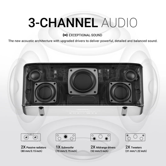 BOGASING S8 Pro Max Bluetooth Speaker, 3-Channel Audio with Lifelike Stereo Sound & Punchy Bass, AUX, Built-in Mic, for Indoor