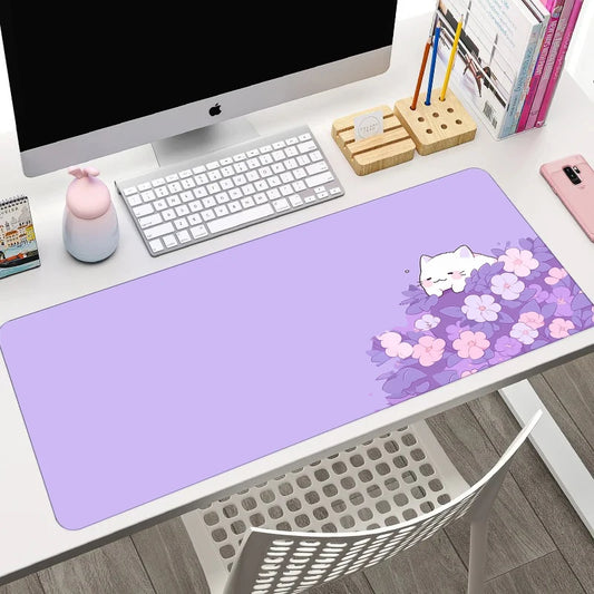Cute Cat in Lavender Mouse Pad Large Computer Office Game Table Mat XXL Rubber Anti-slip Gaming Keyboard Mousepad Long Desk Pads