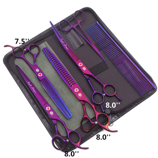 Purple Dragon 7.0'' 8.0'' Pet Grooming Scissors Thinning Shears Professional Cat Dog Curved Scissors Hair Cutting Comb Z3005