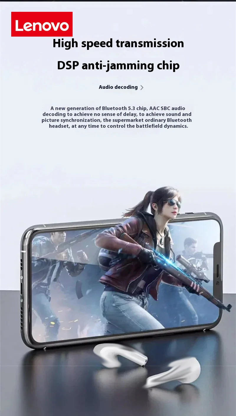 Lenovo Original HiFi Stereo Wireless Earbuds, Stylish Design, TWS Bluetooth Earbuds, Touch Control Sports Earbuds