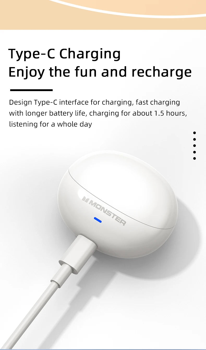 Monster MQT39 Wireless Bluetooth 6.0 Earphones TWS Hifi Stereo Headphones Noise Reduction Gaming Earbuds Sports Headset With Mic