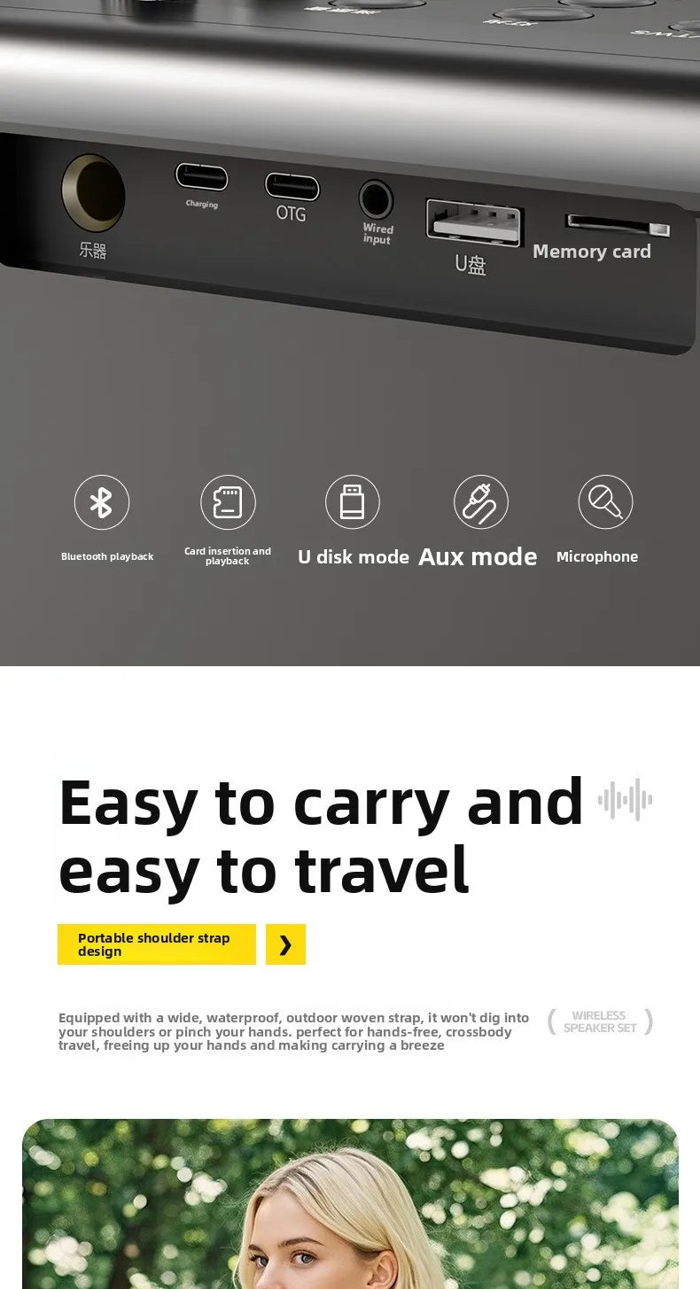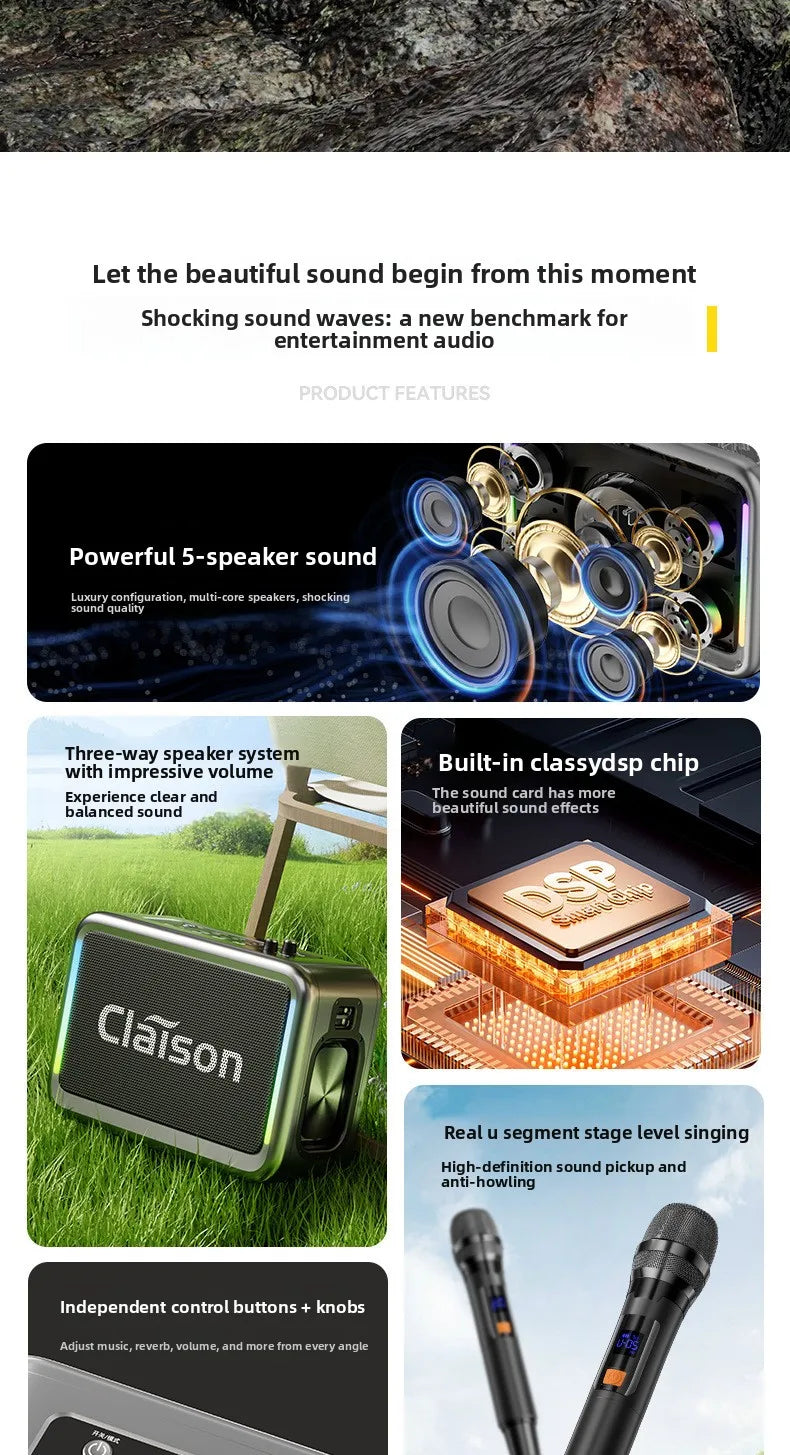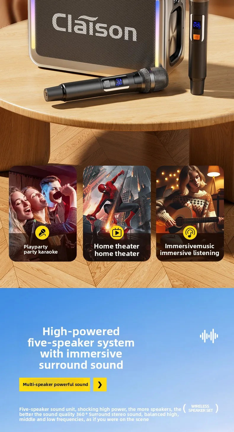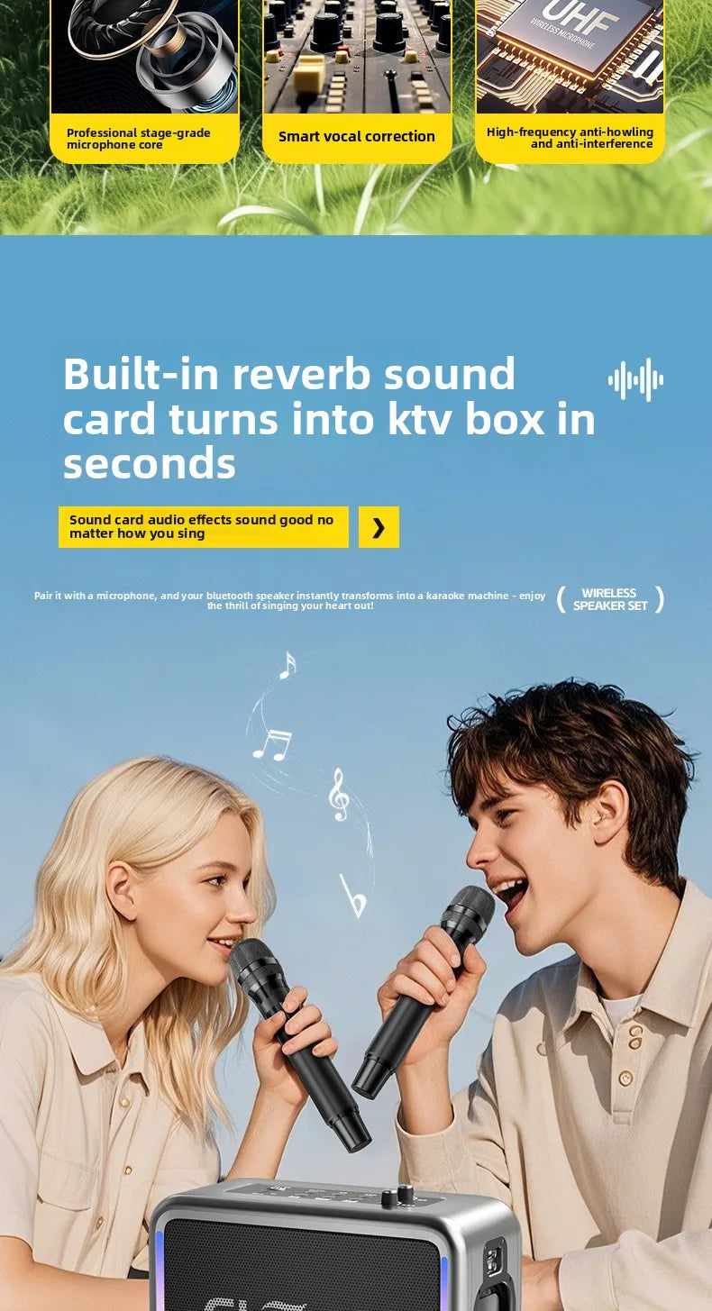 MW Audio Bluetooth Speaker LED Light Dual Mic Karaoke Outdoor Bass Booming Long Battery Life