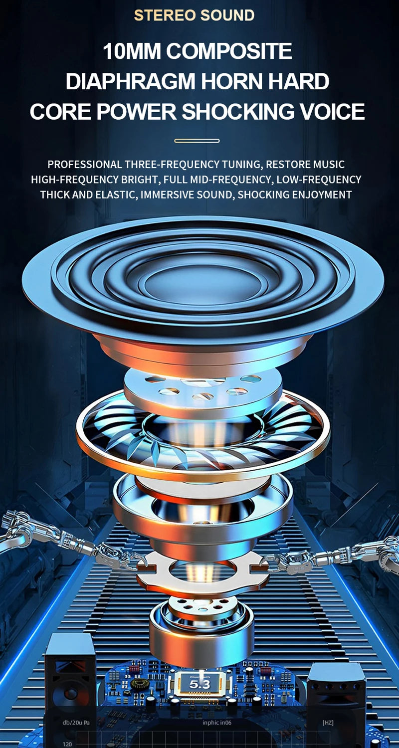 Soleeanre Wireless Headphones Earphone Sports Headset Aluminum Starring Ring Metal Alloy Gaming Earbuds Starburst Light Effect